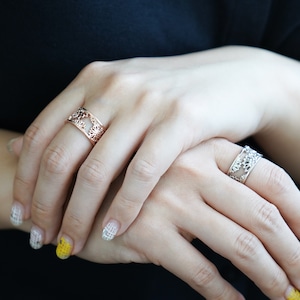透かしのデザインで表現したアートなリング。